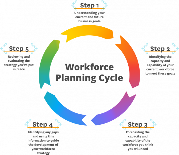 Reviewing the workforce development needs of an organisation considers the skills, knowledge and behaviours that your people will need and how you can support them to develop these effectively. The workforce planning steps are: